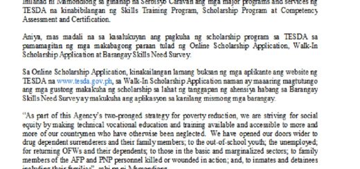 Former TESDA Secretary Guiling “Gene” A. Mamondiong then immediately ordered the officials and partners of the agency to come up with action plans and help the affected residents through various scholarship skills programs.