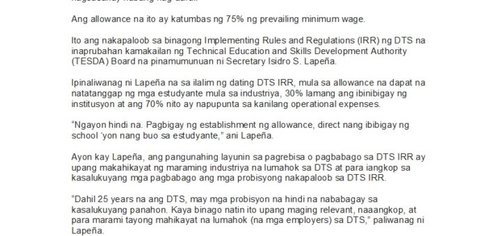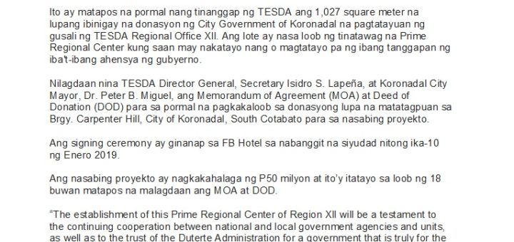 TESDA Public Information Unit News Release 14 February 2019 Special recognition iginawad sa TESDA ng Bayan Academy Pebrero 12, 2019 — Mandaluyong City. Pinarangalan ng Bayan Academy ang Technical Education and Skills Development Authority...