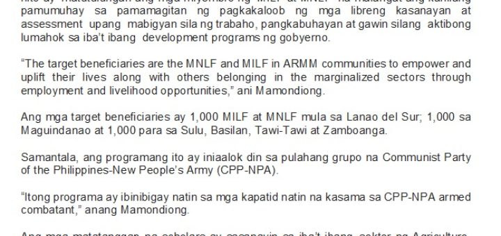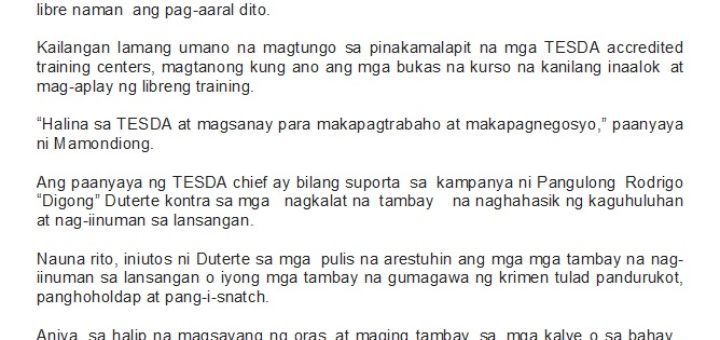 Mamondiong to loiterers: Avail of TESDA’s free skills training