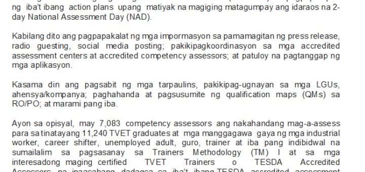 News Release Public Information Unit TESDA July 1, 2018 Mamondiong to loiterers: Avail of TESDA’s free skills training Technical Education and Skills Development Authority (TESDA) Director General, Secretary Guiling “Gene” A. Mamondiong is...