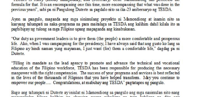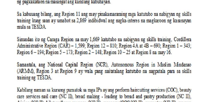 This morning, January 30, 2018 UNTV interviewed our Provincial Director Grace Corazon C. Castillo regarding the activities for 2018. PD Grace announces that Technical Education and Skills Development Authority (TESDA) will hold a two-day National...
