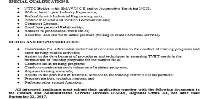 Last September 13, 2017 the TESDA Bulacan Provincial Skills Competition was opened at the Robinson’s Place Malolos, City of Malolos, Bulacan. It started with motorcade from TESDA Guiguinto to Robinson’s Place Malolos. There were...