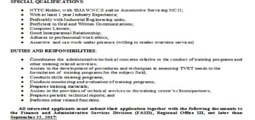 Kabilang sa mga “qualification for assessment” ay ang Technical Drafting NC II; Visual Graphics Design NC II at Computer Systems Servicing NC II para sa Riyadh habang sa Dubai naman ay ang mga Technical Drafting NC II, Visual Graphics Design NC III, Massage Therapy NC II at Caregiving NC II.