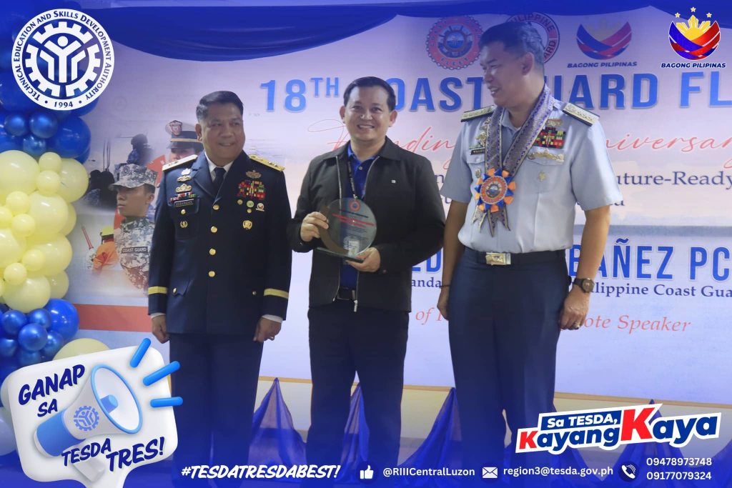 On August 15, 2025, TESDA Regional Training Center Central Luzon – Guiguinto headed by Center Chief Rheo Henry M. Rodriguez, joined the 18th Founding Anniversary celebration of the Philippine Coast Guard Fleet held at the Fleet Training Center of Excellence in Balagtas, Bulacan with the theme “Sailing Strong at 18: Forging Future-Ready Guardians of the Sea.”