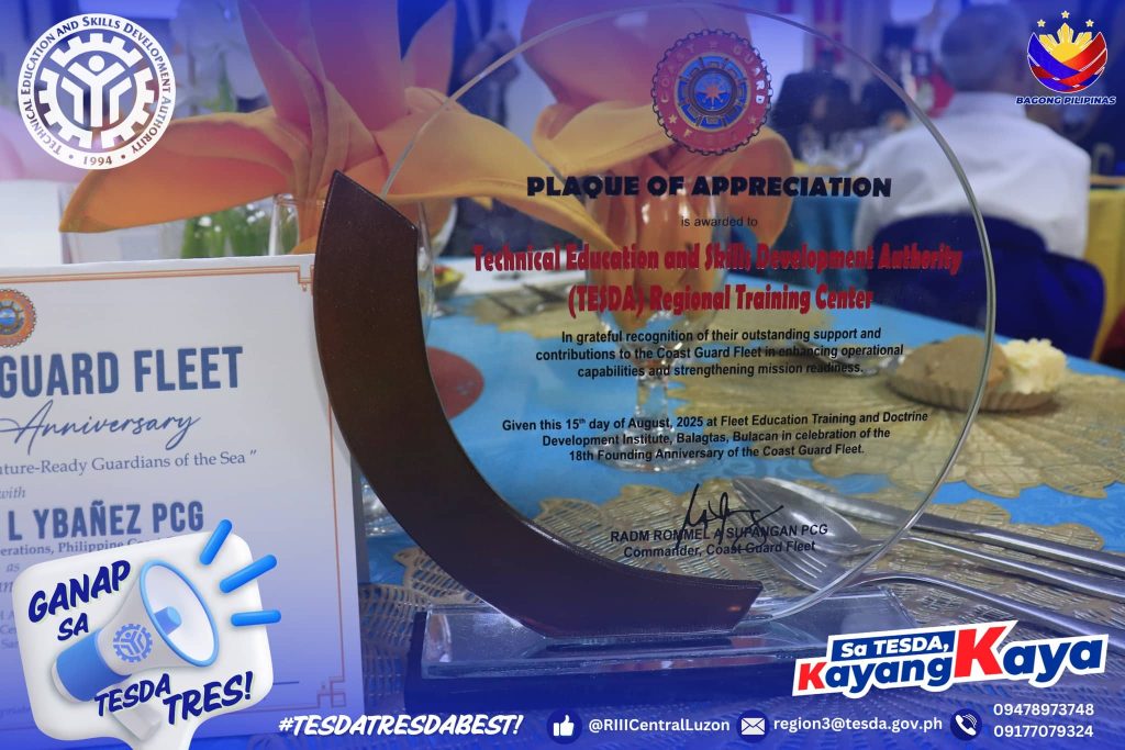 This recognition reaffirms RTCCL-Guiguinto’s vital role in advancing technical education and training, in support of the Coast Guard Fleet’s mission of developing future-ready, world-class guardians of the sea. It further highlights the strong partnership between TESDA and the Philippine Coast Guard, anchored on a shared commitment to skills development, maritime safety, and public service through collaborative initiatives.