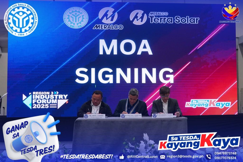 The forum highlighted the promotion of the Enterprise-Based Education and Training (EBET) Framework and the Micro-Credentialing Program, both aimed at aligning technical-vocational training with industry needs. Program highlights included a keynote message from TESDA Director General Jose Francisco “Kiko” B. Benitez, technical presentations, updates on tax incentives, and the ceremonial MOA signing with Terra Solar Philippines Inc. and Meralco Power Academy for a solar workforce training initiative. The event also featured open forums and commitment segments to strengthen public-private collaboration in workforce development.