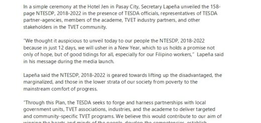 For more inquiries, please contact Ms. Rowena Tolentino, Administrative Officer V, via mobile number, 09425237237 or via email, region3.bulacan@tesda.gov.ph.